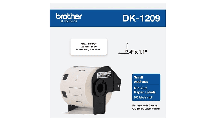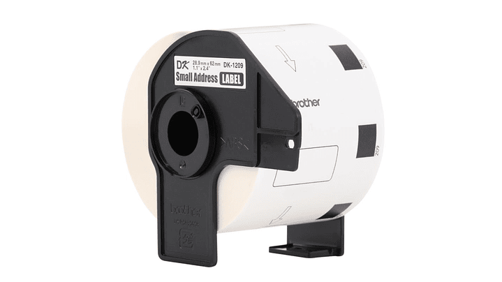 BROTHER DK-1209 | DK1209 | Cinta de etiquetas fondo Blanco - Texto Negro | 800 etiquetas pre cortadas de 62 milímetros de ancho x 29 milímetros de largo | papel térmico y con adhesivo industrial