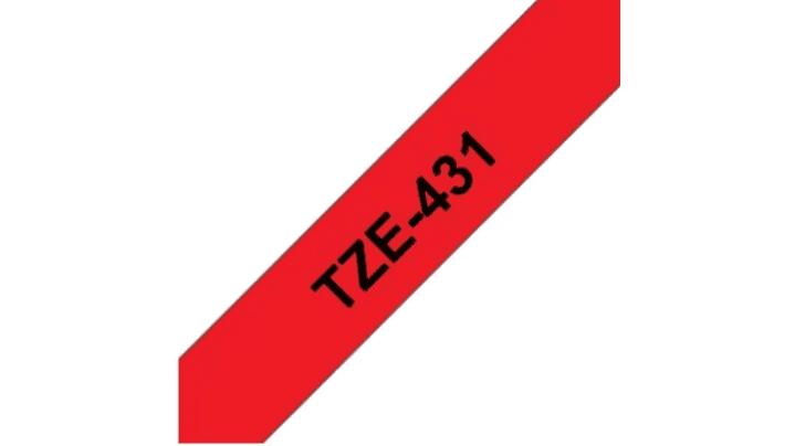 BROTHER TZe-431 | TZE431 | Cinta de etiquetas fondo Rojo - Texto Negro | 12 milímetros de ancho x 8 metros de largo laminada y con adhesivo (Standard)