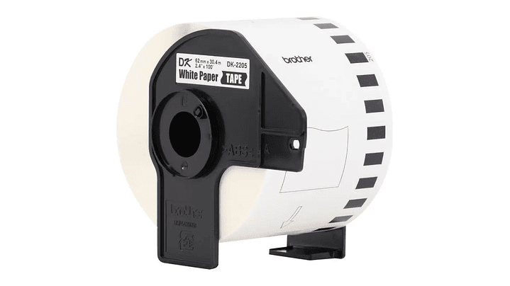 PACK 5 X BROTHER DK-2205 | DK2205 | DK 2205 | Cinta de etiquetas fondo Blanco - Texto Negro | 62 milímetros de ancho x 30,48 metros de largo papel térmico y con adhesivo industrial
